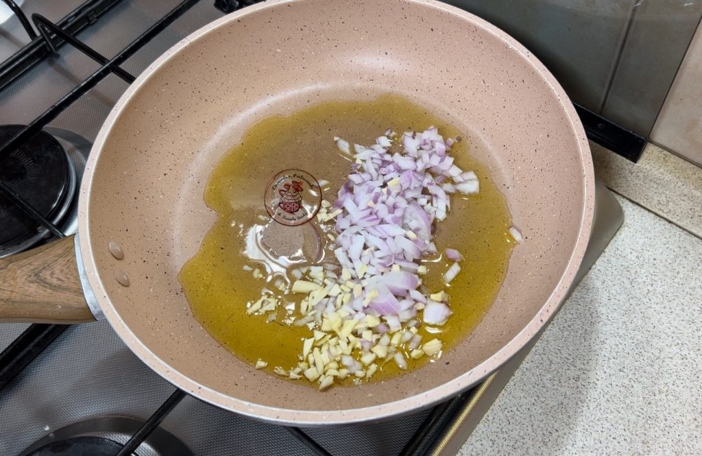En una sartén freír durante 5 minutos la chalota y el ajo picado.
