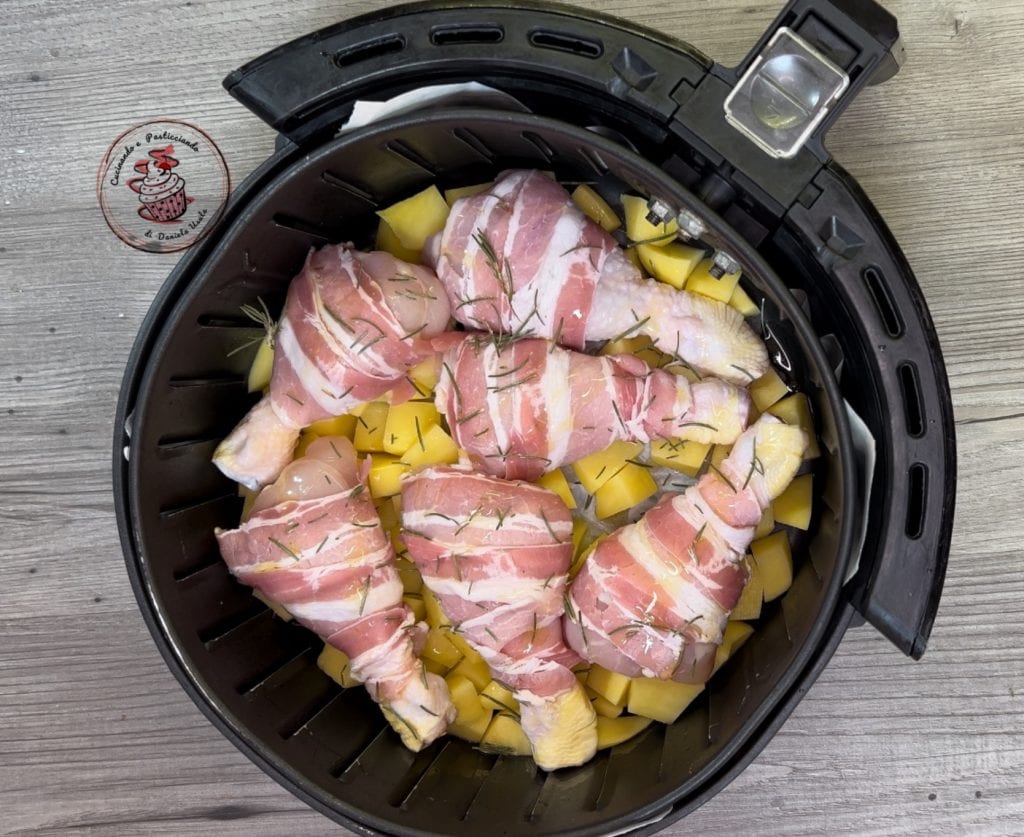 Hoy he preparado los muslos de pollo con bacon y patatas, una manera diferente y sabrosa de comer pollo. Para la cocción he elegido la freidora de aire, pero también va bien el horno tradicional. Sabíais que el pollo con patatas es uno de los platos más queridos por los italianos. A nosotros en la familia nos encanta. Las patatas deben ser super crujientes y el pollo tierno y jugoso. Nosotros solemos usar pollos criados por nosotros. Y creedme, la diferencia se nota, sobre todo se siente. En el blog hay muchas recetas de pollo, os comparto algunas.