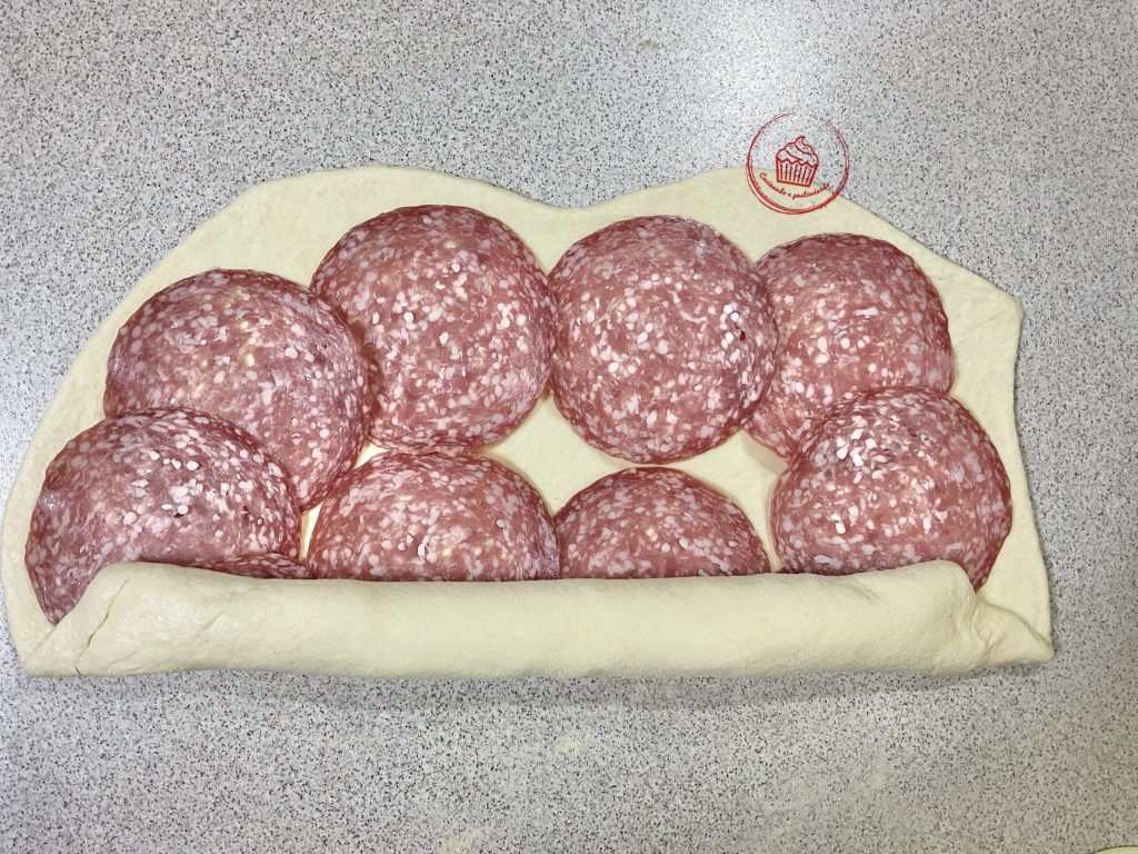 Hoy, de hecho, he preparado la paloma de pan rellena con la masa del Pan sin amasado con masa madre. ¡Buenísima! para rellenarla he usado salami, pero aquí podéis dejar volar vuestra imaginación y rellenarla con lo que más os guste.