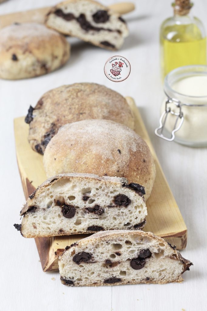 Hoy he preparado pan con aceitunas, buenísimo, de hecho, la última vez que hice pan con aceitunas a la sarda, guardé un poco de aceitunas en el congelador. Hoy he hecho una receta diferente. De hecho, las aceitunas se añaden después de la primera fermentación y no al principio como el pan de aceitunas a la sarda. Para el pan con aceitunas he utilizado sémola de trigo duro y harina de tipo 2, que podéis sustituir tranquilamente con harina 0.