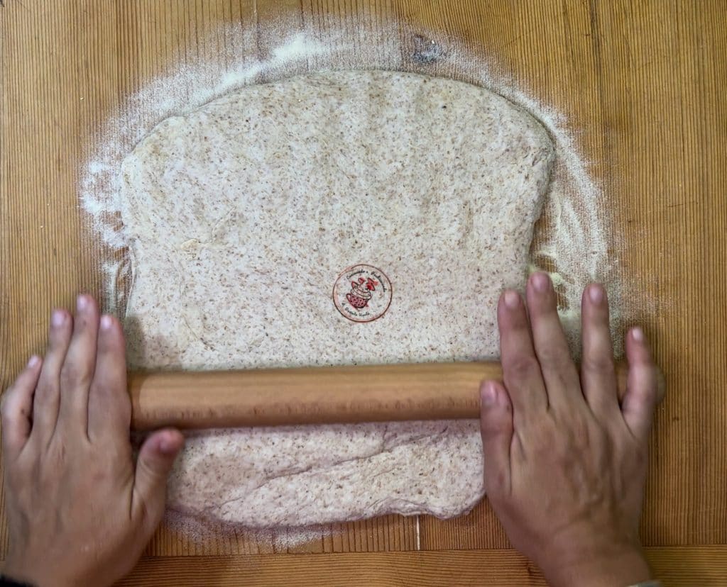 Luego la extendí sobre la encimera con el rodillo. Hasta formar un rectángulo delgado, de aproximadamente 2 cm.