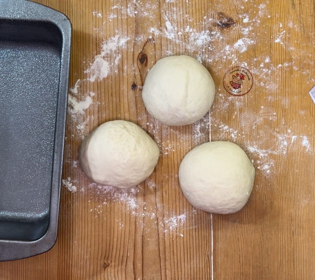 Transferid la masa a la superficie enharinada y formad 3 bolas. Yo con esta cantidad hice 2 panbrioche porque mi molde era bastante pequeño.