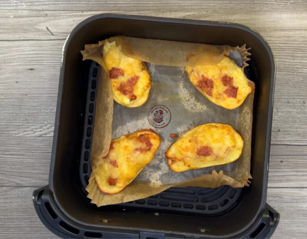 Las patatas rellenas en freidora de aire son una solución rápida y deliciosa para llevar a la mesa un plato sabroso con menos aceite pero mucho sabor. La cocción al aire hace que las patatas queden crujientes por fuera y suaves por dentro, con un relleno cremoso y fundente que conquista a todos. ¡Una idea perfecta para reciclar sobras y preparar una cena con pocos ingredientes!