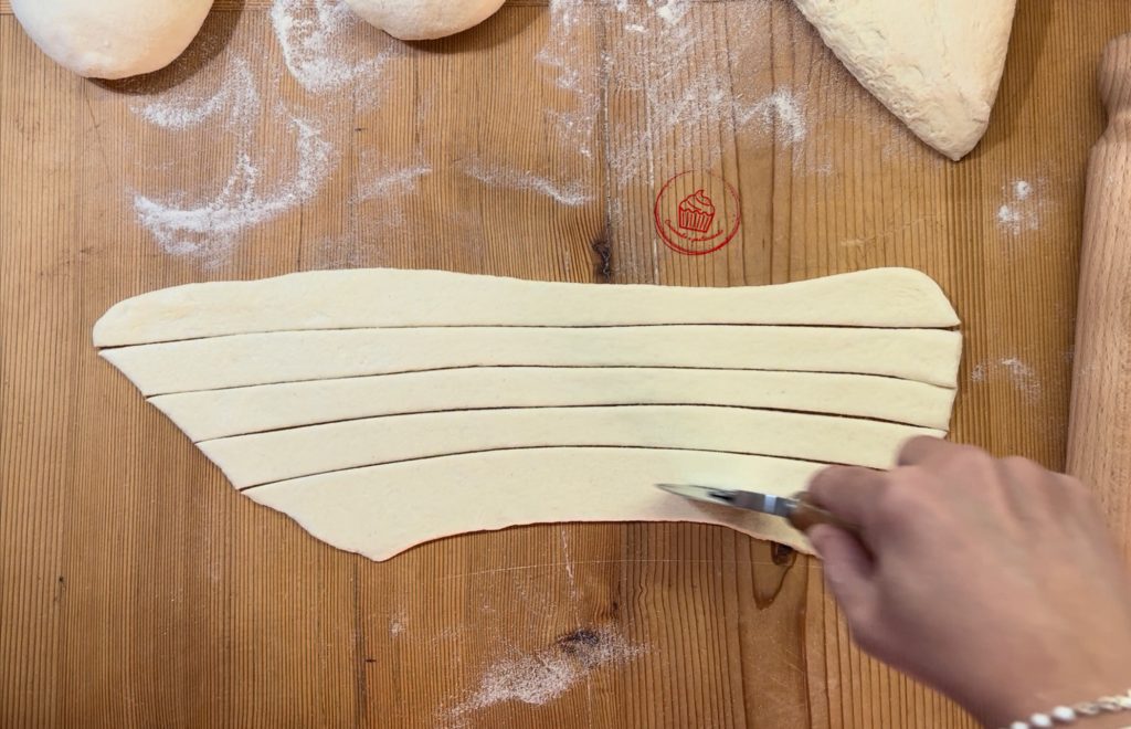 La parte de los rollos la he extendido con el rodillo y con la ayuda del cortapizza he sacado muchas tiras.