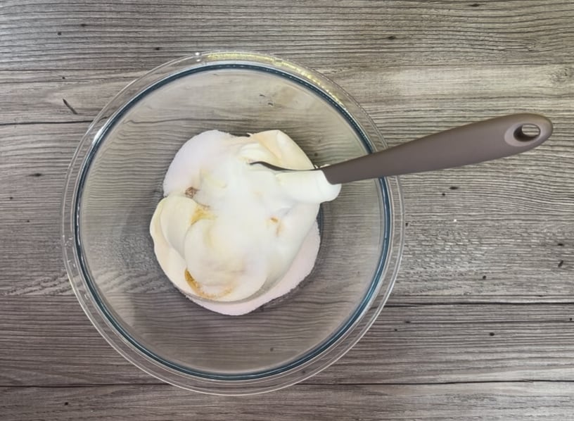 En un bol mezclamos el mascarpone con el azúcar y la vainilla.