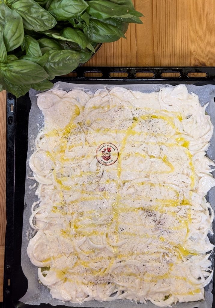 Después del éxito de la Schiacciata rápida de patatas crujientísima y la Schiacciata de calabacín, fácil, rápida y súper crujiente, hoy, a petición popular (de mi marido) la schiacciata crujiente de cebollas. Buenísima y también súper rápida de preparar. La schiacciata crujiente de cebollas se prepara realmente en muy poco tiempo. Yo he utilizado cebollas blancas, pero vosotros podéis usar las que más os gusten. Yo adoro las cebollas. Os recomiendo además 5 recetas deliciosas con cebollas, una recopilación dedicada a las cebollas si también sois amantes de las cebollas como yo.