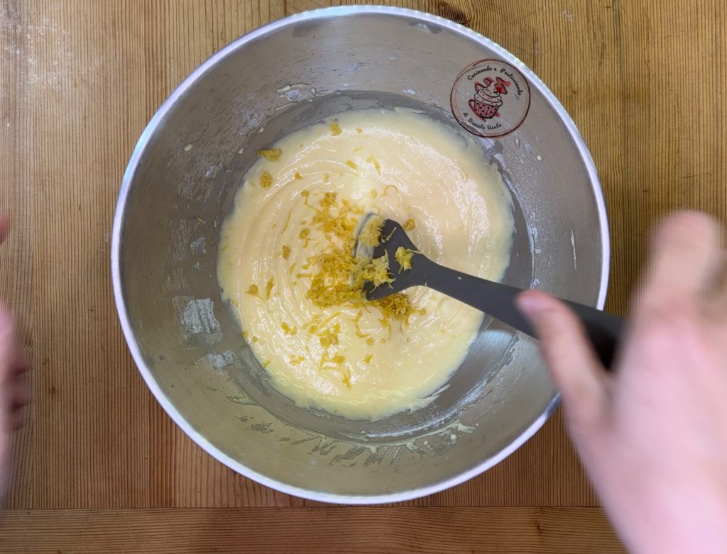 Añadimos por último la cáscara de limón y mezclamos bien con la espátula.