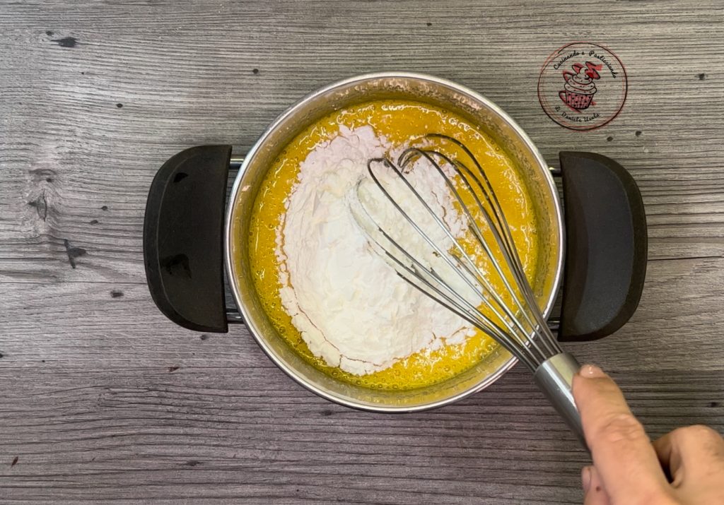 Añadimos la maicena a los huevos y seguimos mezclando, no deben quedar grumos.