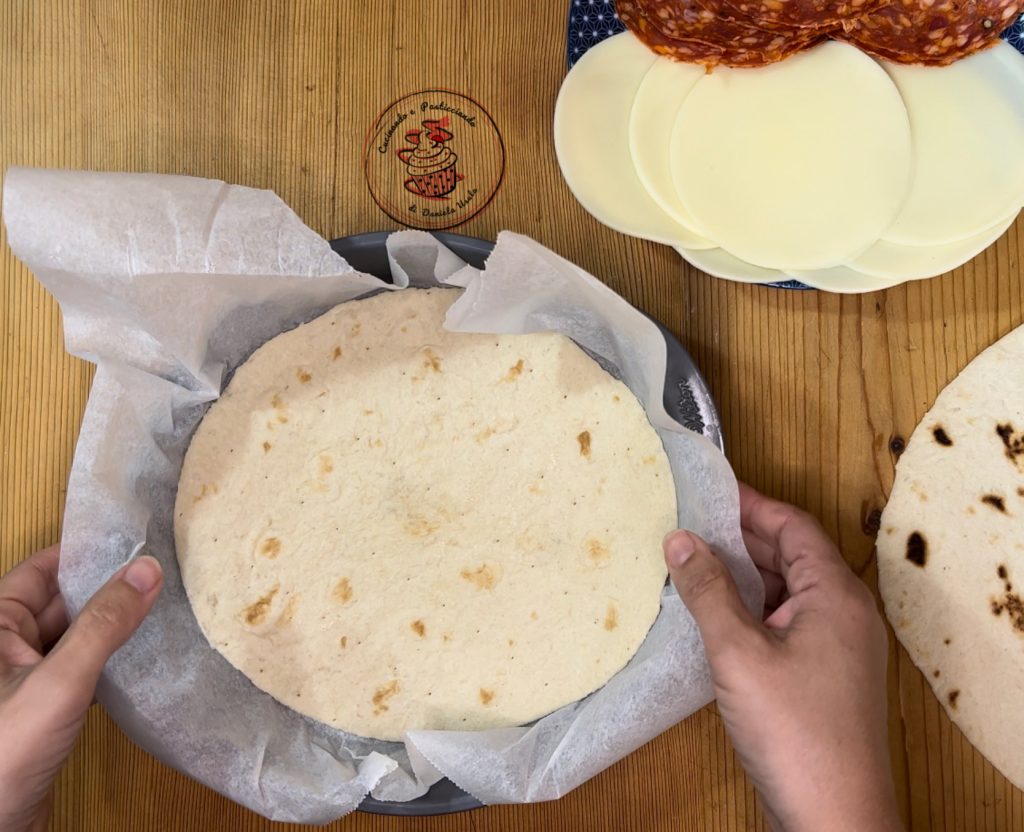 • Forrad la bandeja con papel de horno y colocad la primera piadina.