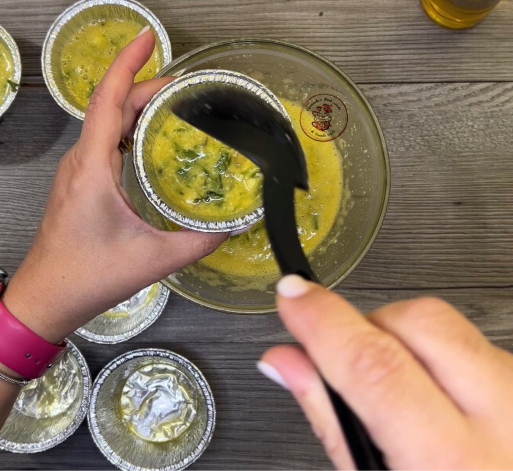 • Unta los moldes con aceite y vierte un poco de la mezcla hasta casi el borde.