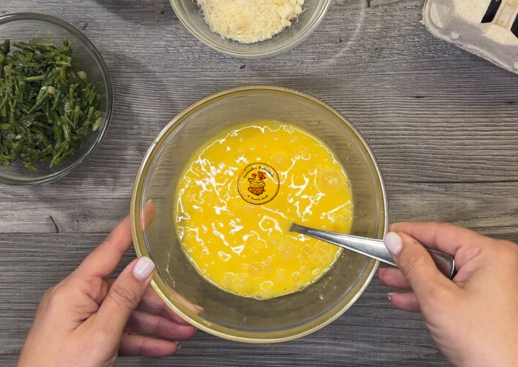 • Añade el queso rallado y continúa mezclando con un tenedor.