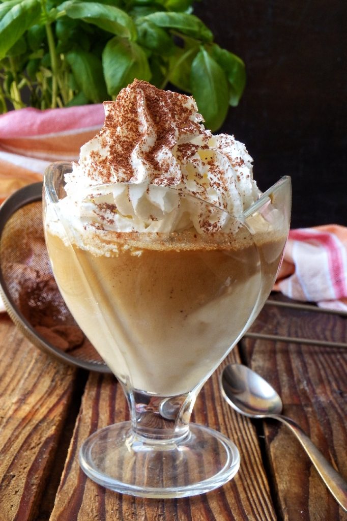 El affogato al café es un postre facilísimo de preparar elaborado rigurosamente al momento, perfecto como postre pero también como merienda. Se compone de helado de nata, literalmente sumergido en café espresso, enriquecido después con nata montada espolvoreada con cacao amargo en polvo. ¡Un postre realmente delicioso!