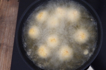 Calienta el aceite a una temperatura de 160° en una cacerola de bordes altos. Sumerge pocas albóndigas a la vez y fríe hasta que estén doradas. Retira con una espumadera y coloca sobre un plato cubierto con papel absorbente. ¡Sirve de inmediato en la mesa y buen provecho!