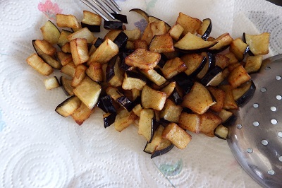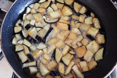 Fríe las berenjenas en abundante aceite de semillas a una temperatura de 170°