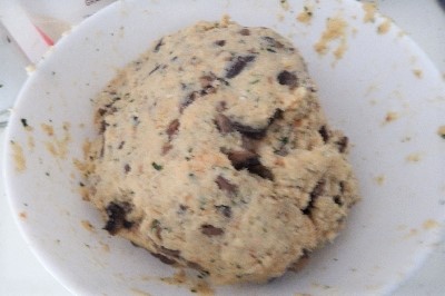 Trabaja la masa con las manos y forma una mezcla compacta. Deja reposar durante 30 minutos en el bol cubierto con un paño. Si la masa está demasiado blanda, puedes añadir pan rallado hasta alcanzar la consistencia deseada.