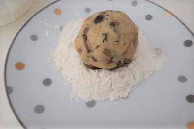 Con las manos humedecidas forma 8 bolas. Pasa cada canederlo por la harina