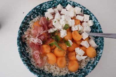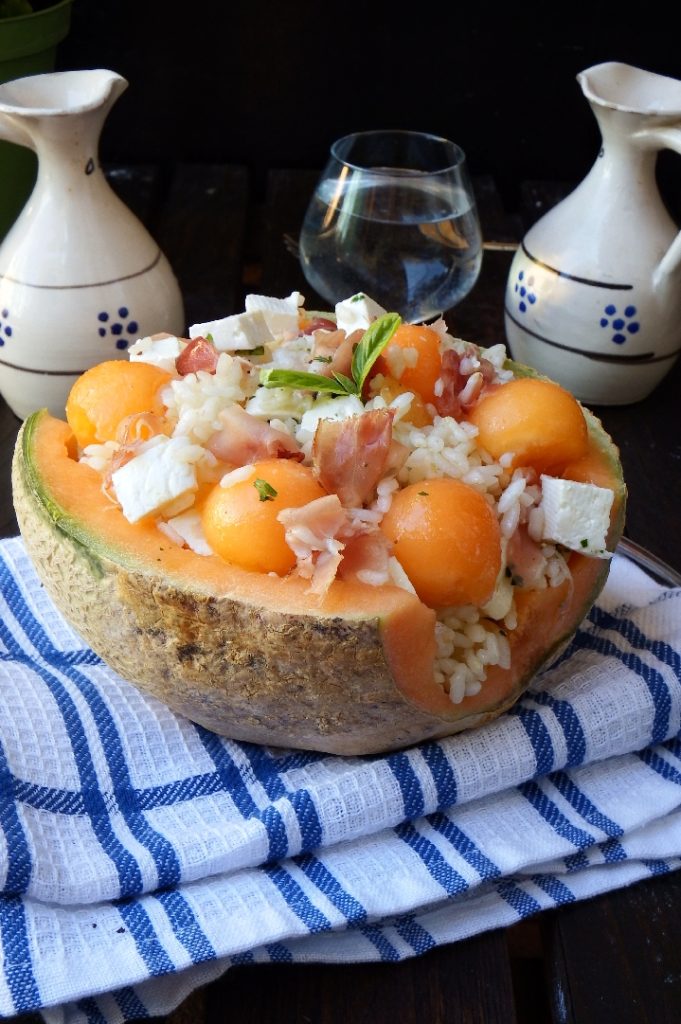 La ensalada de arroz con jamón y melón es un excelente plato único para servir frío, que combina en un solo plato dos de mis cosas favoritas para comer en verano. Una idea sabrosa pero también original si quieres servir tu arroz dentro de las cáscaras del melón durante una cena con amigos.