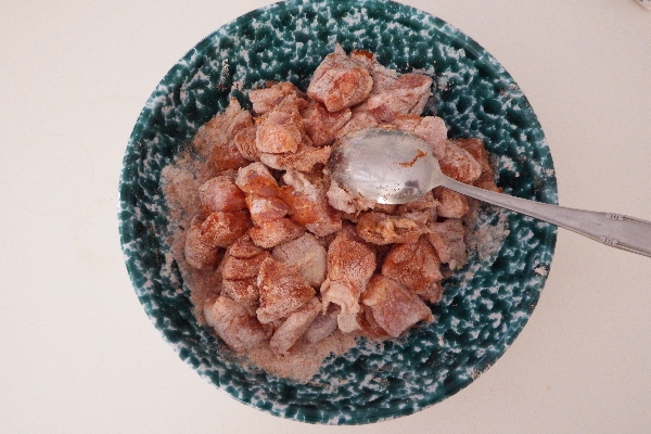 • Pon los trozos en el bol con la harina y la paprika dulce, mezcla con cuidado y reserva