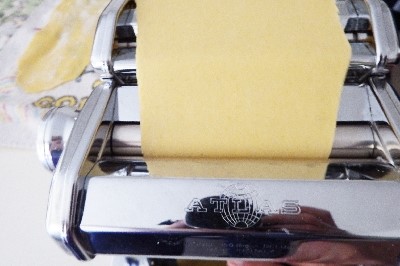 Coloca las hojas de pasta fresca sobre paños de cocina y córtalas en rectángulos de 30×20 cm. Continúa de esta forma hasta que hayas terminado la masa, mientras tanto pon al fuego una olla llena de agua con sal