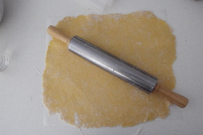 • Quita el hueso de las cerezas y reserva. Extiende la masa sobre una superficie con papel de horno enharinado