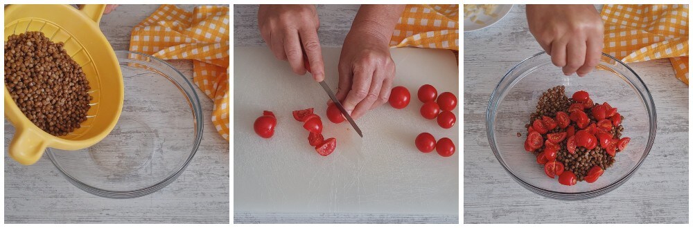Amo esta receta también porque es una excelente manera de consumir legumbres durante la temporada cálida, cuando tal vez tendemos a comerlas menos. Las lentejas, de hecho, son un verdadero concentrado de proteínas y fibras y combinan perfectamente con el sabor delicado de la bresaola, la dulzura de los tomates cherry, el aroma de la menta fresca y las escamas de parmesano que añaden ese toque extra.