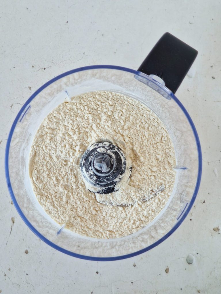 Accionad la picadora durante unos segundos hasta que obtengáis la «arenado» de la harina, que tendrá, en este punto, la consistencia de la arena húmeda.