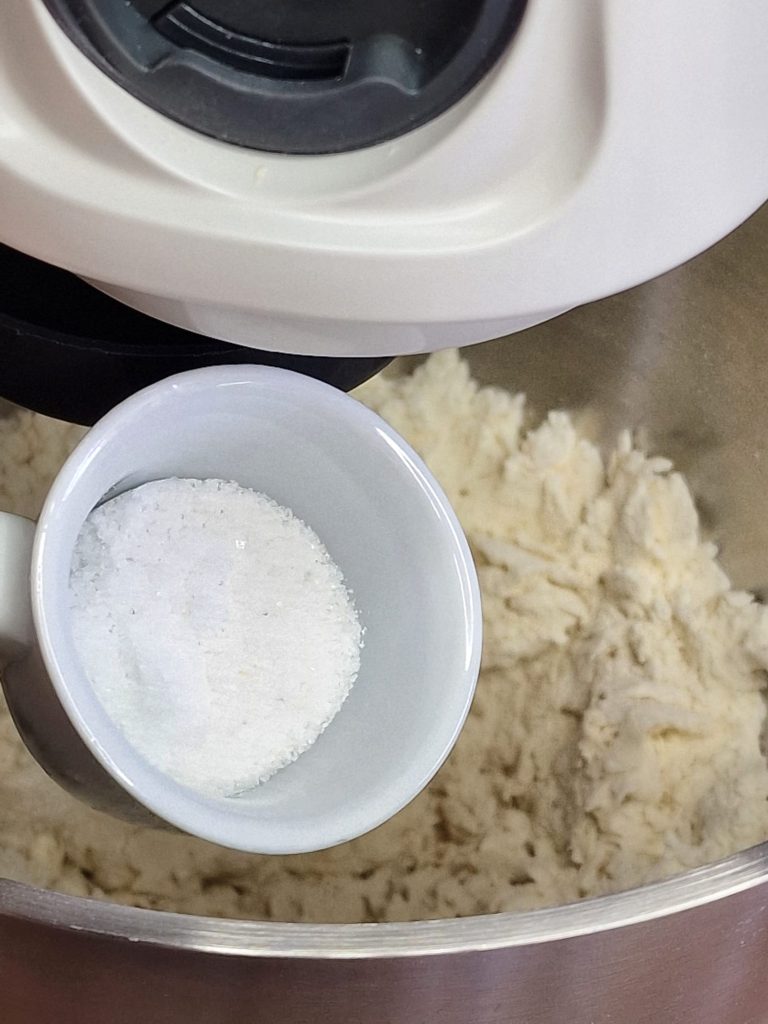 Para preparar la masa base de los scugnizzi fritos puedes amasar tranquilamente a mano ya que no es una masa de alta hidratación sin embargo, si tienes una amasadora, puedes utilizarla como hice yo.