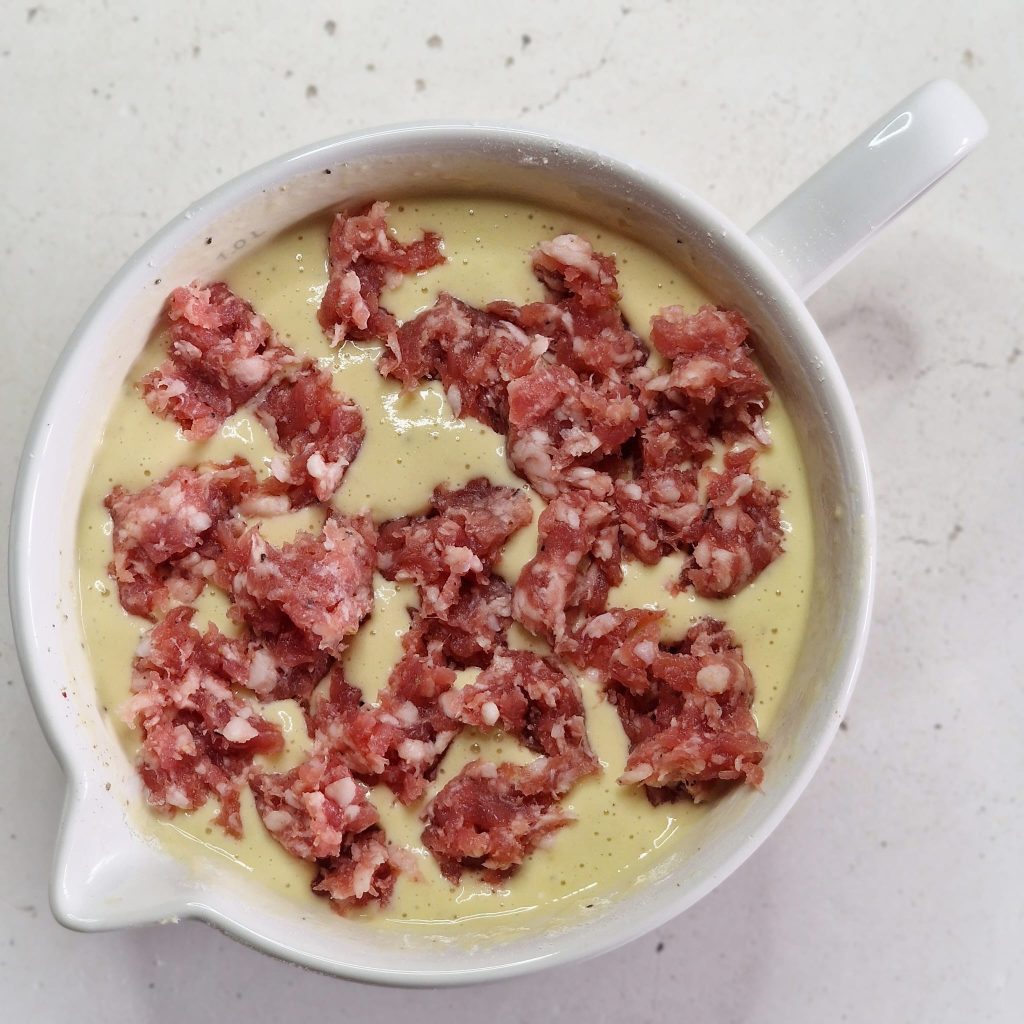 Los ingredientes necesarios son solo huevos, leche, harina, salchicha fresca tipo luganega y, por supuesto, los imprescindibles sal y pimienta para realzar los sabores.