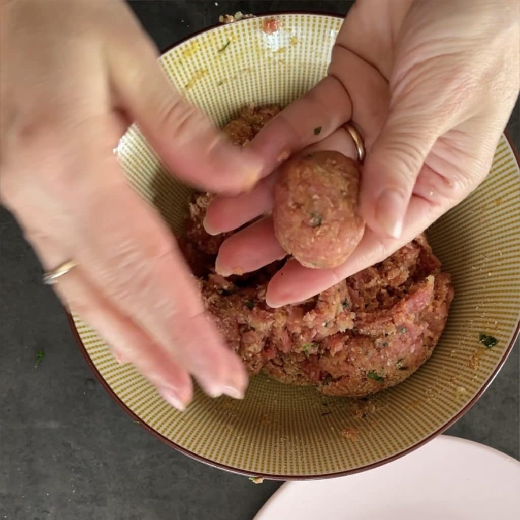 • Forma las albóndigas del tamaño de un albaricoque, no las hagas demasiado grandes, así tendrás una cocción homogénea y bien cocidas por dentro,