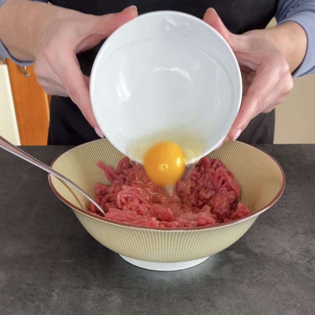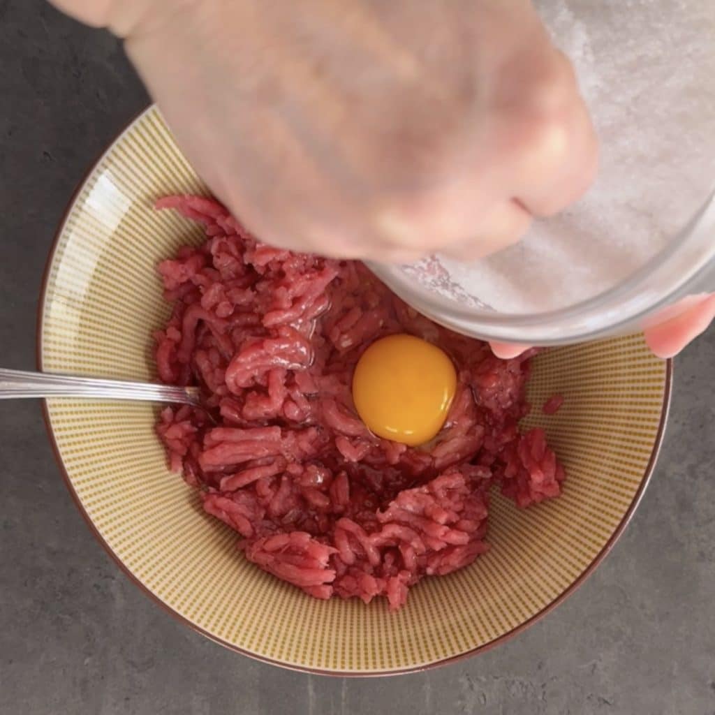 Coloca en un bol la carne molida de ternera, un chorrito de aceite de oliva virgen extra,