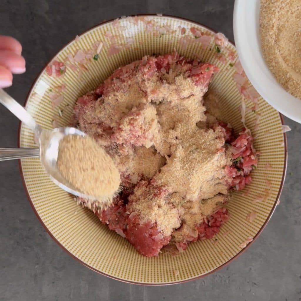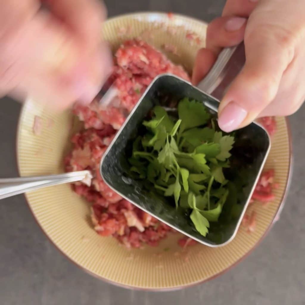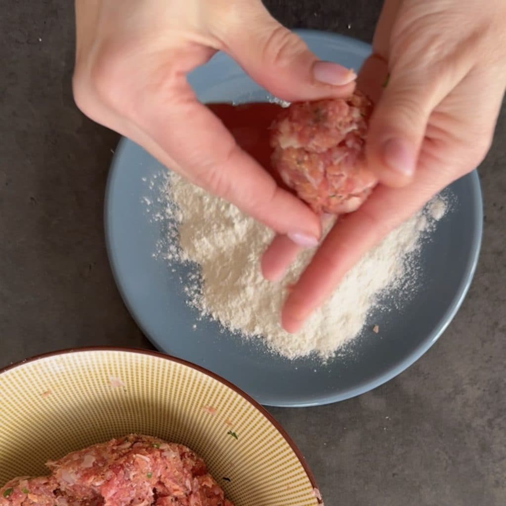 Toma parte de la carne, forma las albóndigas del tamaño de un albaricoque, haciéndolas girar entre tus manos, no las hagas demasiado grandes, así tendrás una cocción homogénea y también bien cocidas por dentro