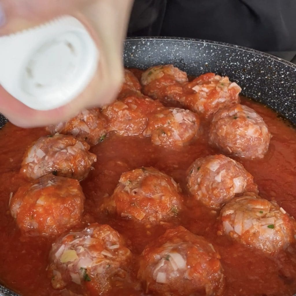 ajusta de sal, cubre con la tapa y cocina las Albóndigas con mortadela en salsa durante 20 minutos.