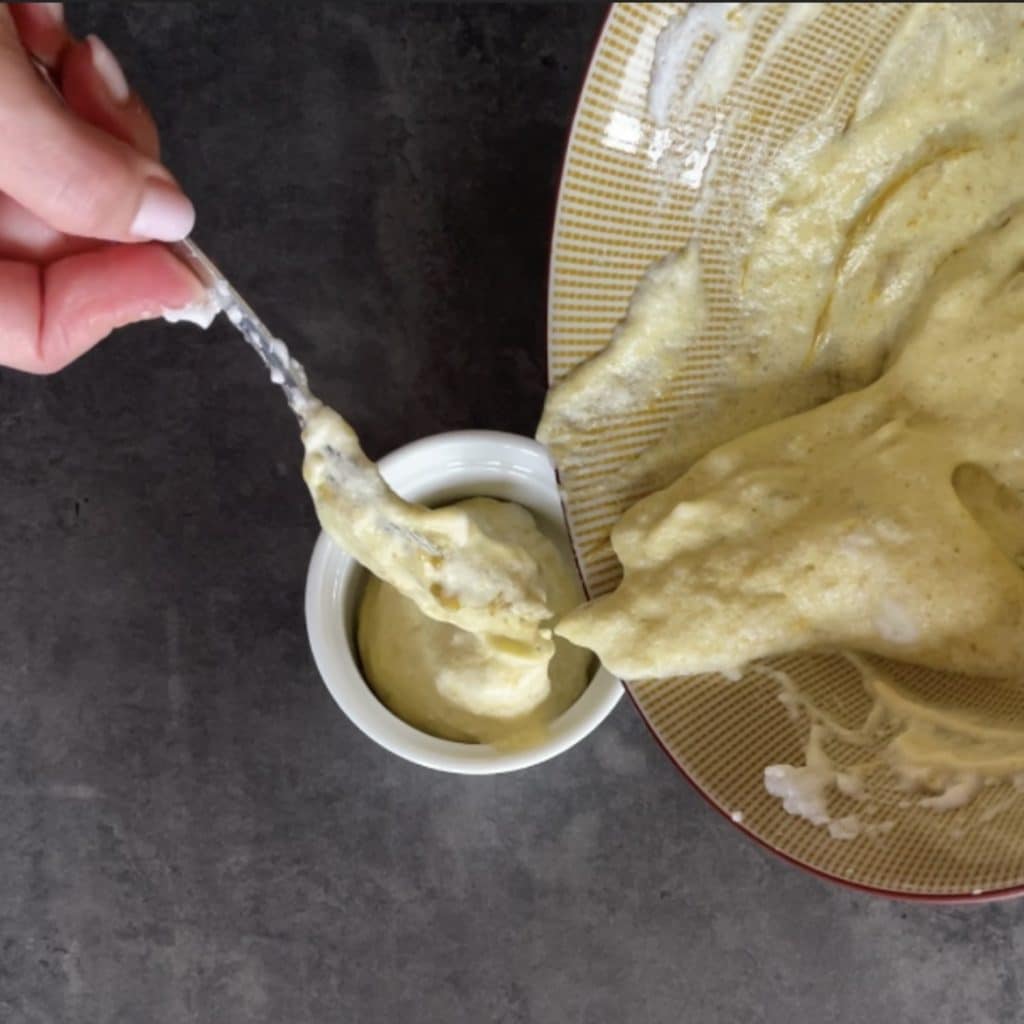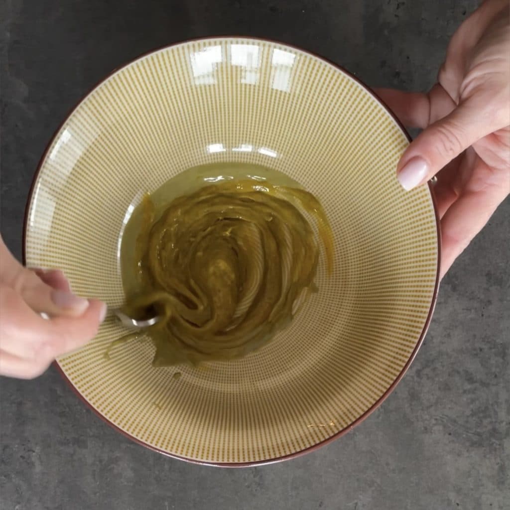 • hazlo incorporar con un tenedor o una espátula con movimientos de arriba hacia abajo para no desarmar la mezcla.