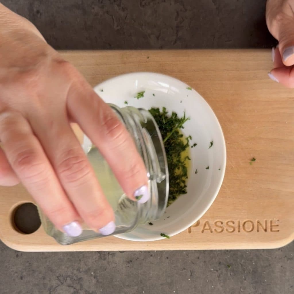 Vierte el aceite aromatizado sobre los calabacines a la plancha,