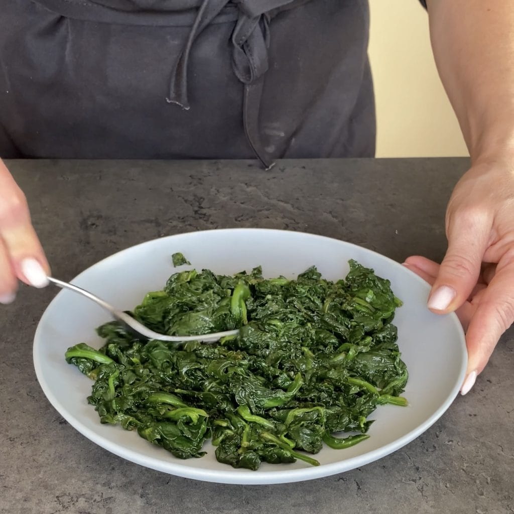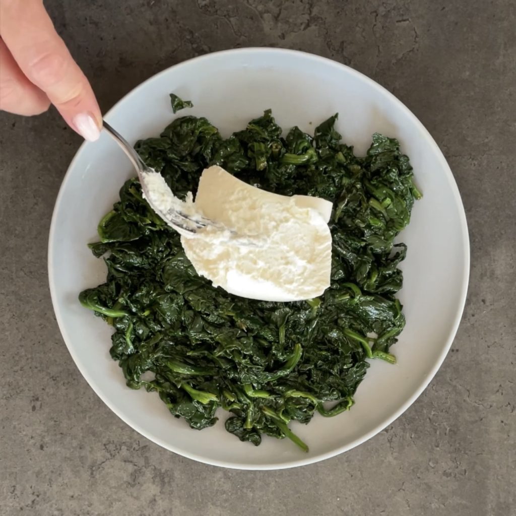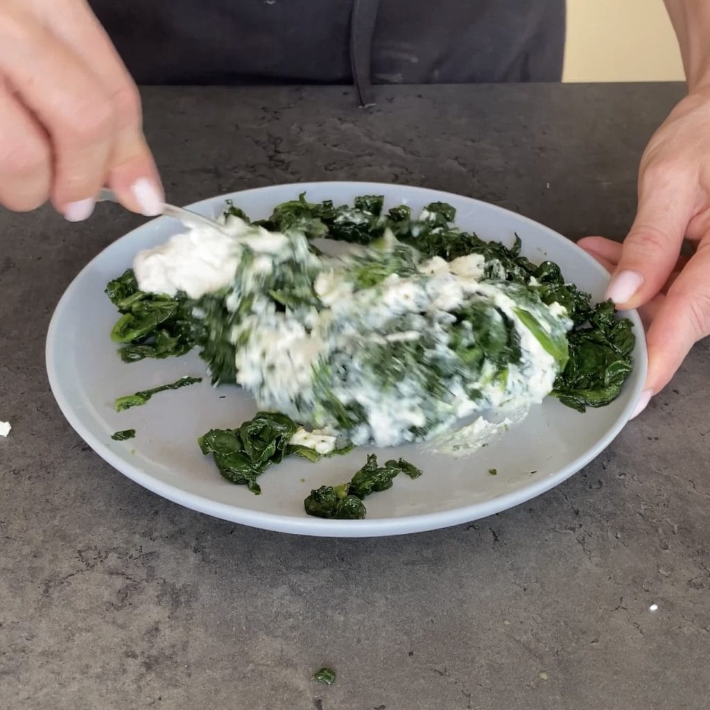 Toma las espinacas, colócalas en un plato y tritúralas con un tenedor,