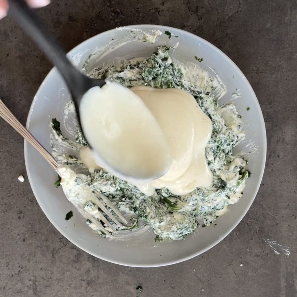 y añade también unas cucharadas de bechamel para obtener una mezcla cremosa pero compacta.
