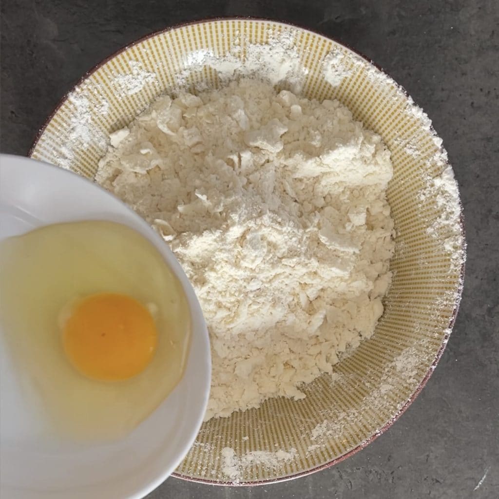Comenzamos a preparar las cestas de masa quebrada salada, verted la harina en un bol, añadid la sal,