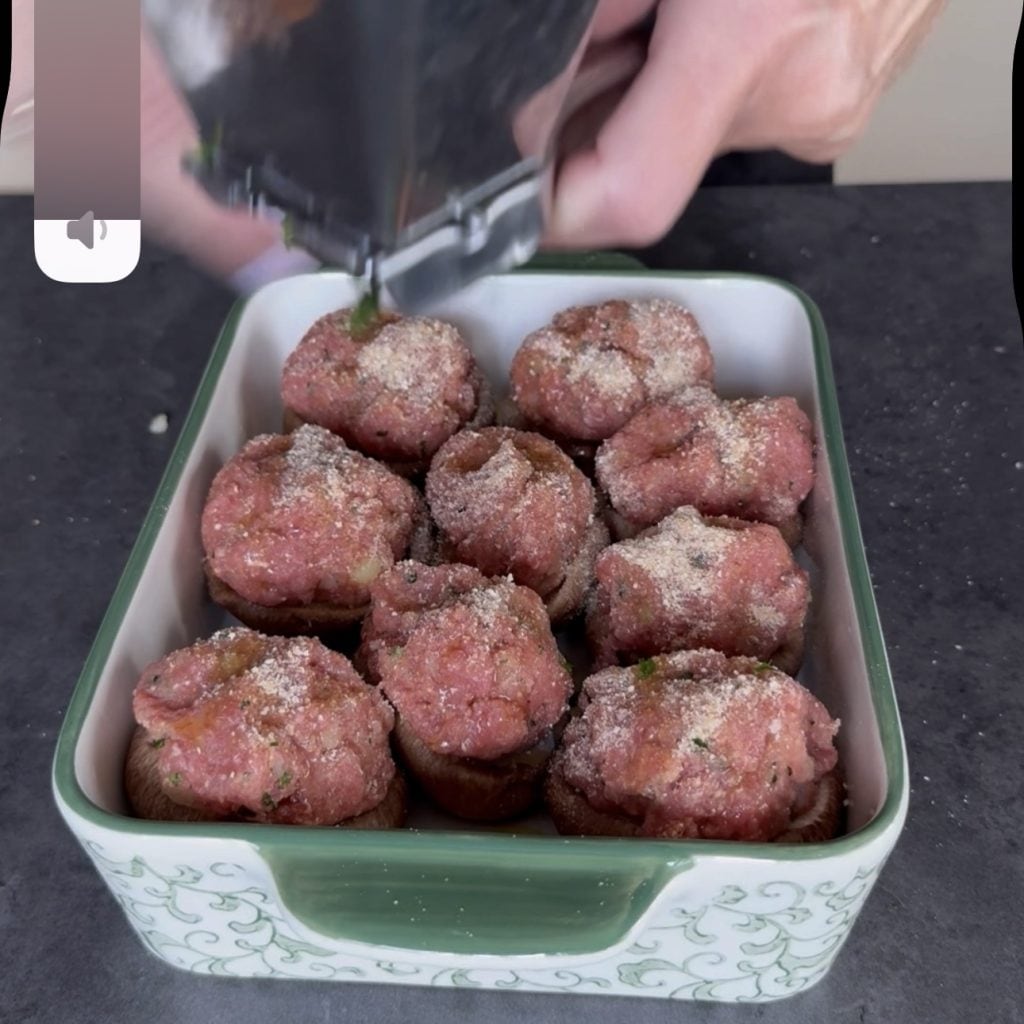 y forma una albóndiga con parte de la mezcla, coloca la carne en cada champiñón.