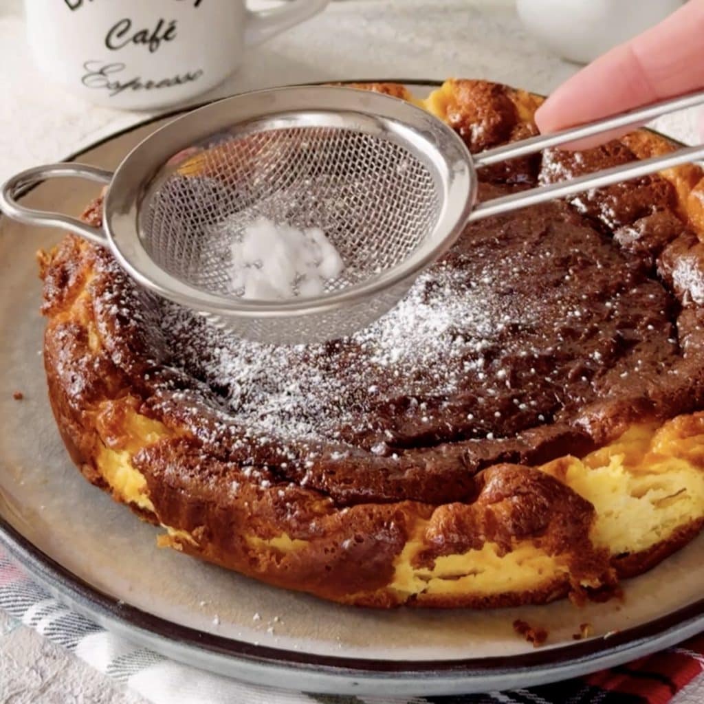 • Cuece en horno estático ya caliente a 180°C durante 1 hora, si ves que la superficie se colorea demasiado, cubre con una hoja de aluminio, cuando esté cocida, sáquela del horno, deja que se enfríe, sáquela del molde y espolvorea con azúcar glas.