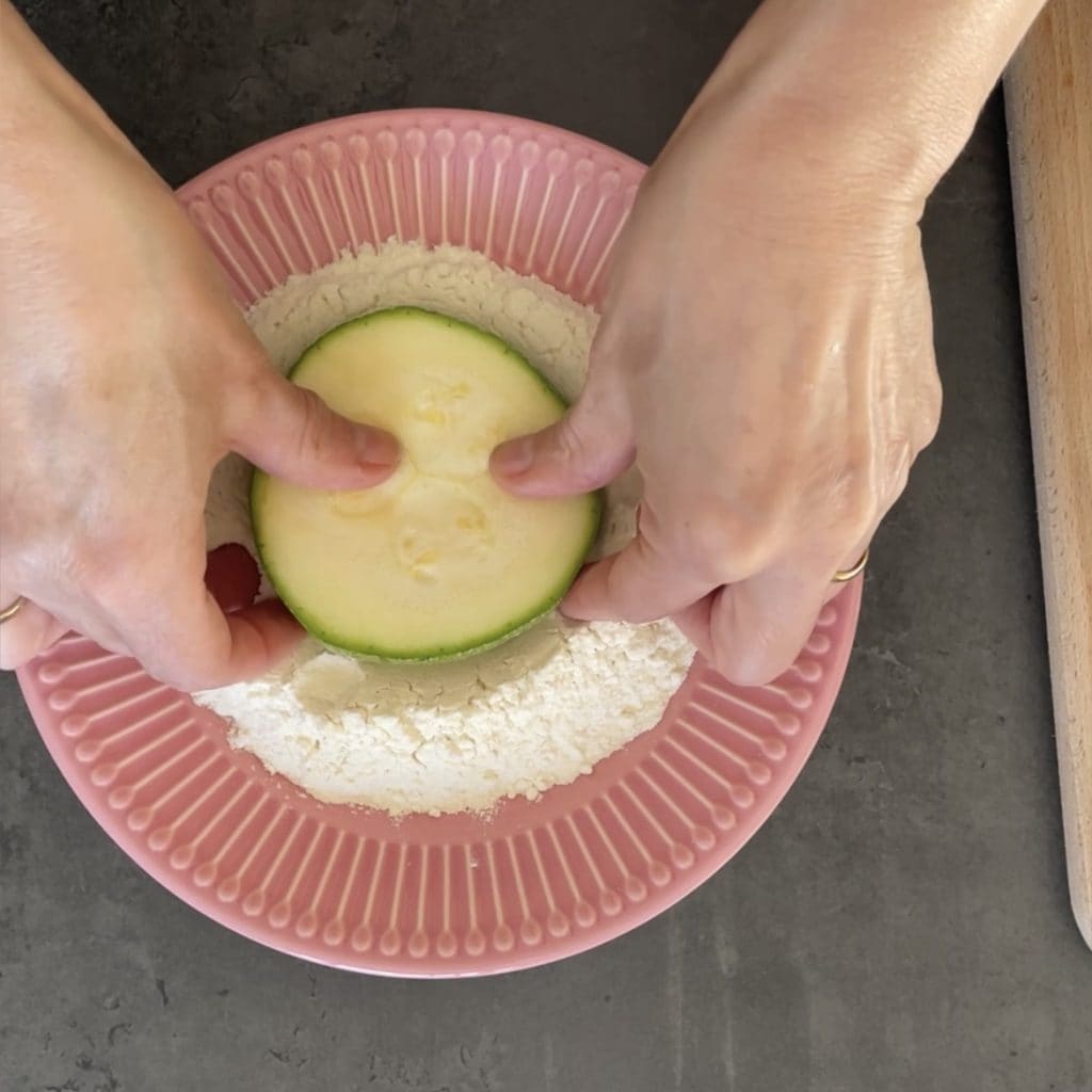 Cuando hayas preparado todos los calabacines en carroza, pásalos por la harina,