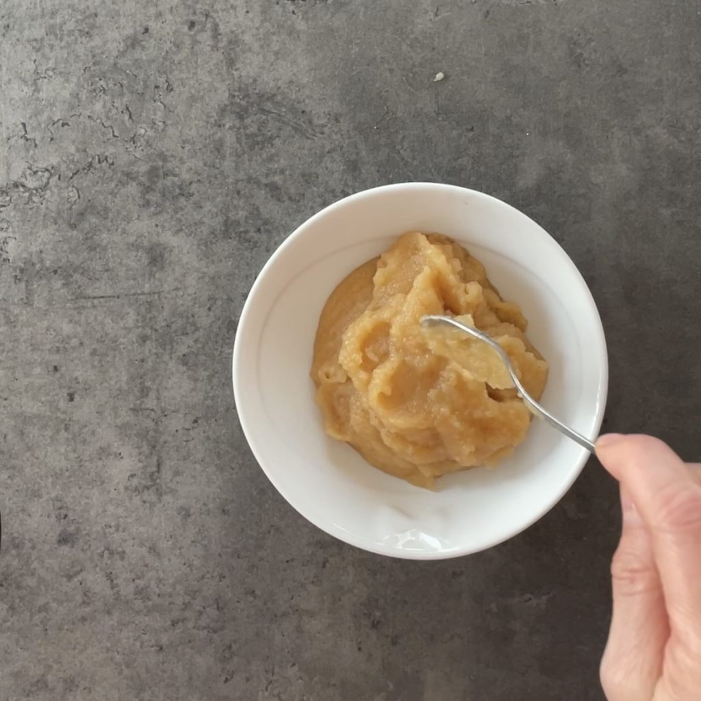 Añadid a cada porción una cucharada de crema de manzana en la parte más ancha.