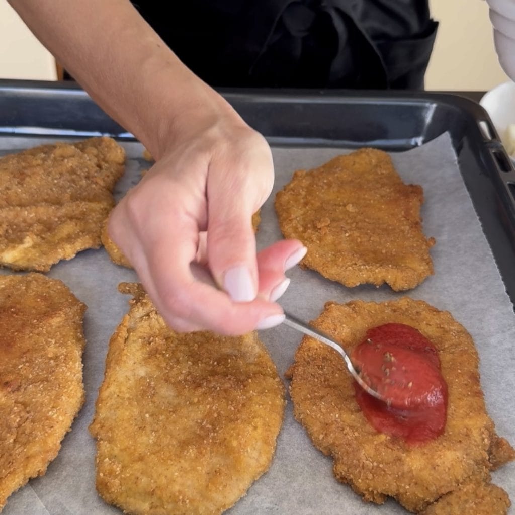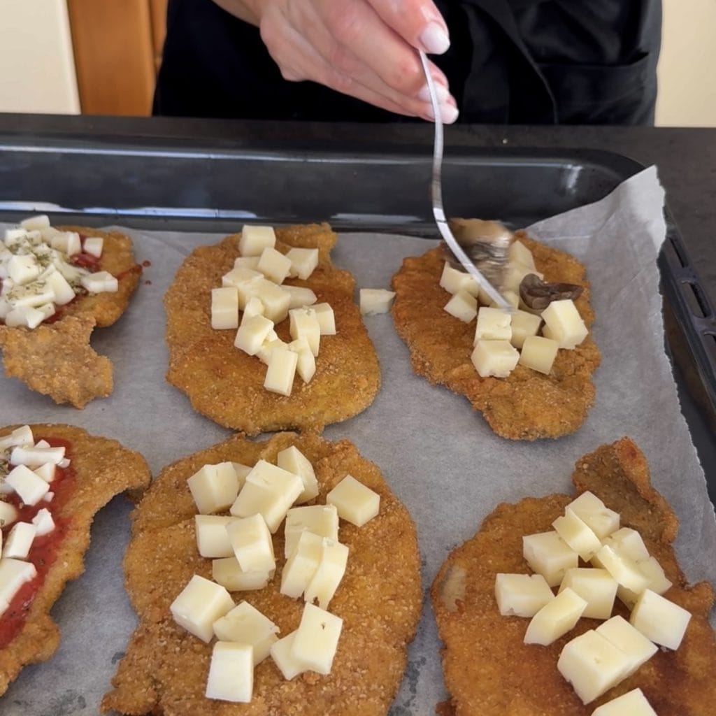 Filetes empanados rellenos, un delicioso segundo plato que gusta tanto a mayores como a niños y los puedes rellenar de muchas maneras según los gustos. Los filetes de cerdo, una vez fritos, se colocan en una bandeja y se usan como base para realizar una especie de pizzetas. En mi caso, los he hecho a la pizzaiola con tomate, mozzarella y orégano, y otros con queso asiago y setas, pero también puedes rellenarlos con jamón, aceitunas, alcachofas, verduras, en fin, con lo que prefieras o tengas en casa. Ahora vamos a ver cómo hacer los filetes empanados rellenos y si los pruebas dime qué tal. Barbara