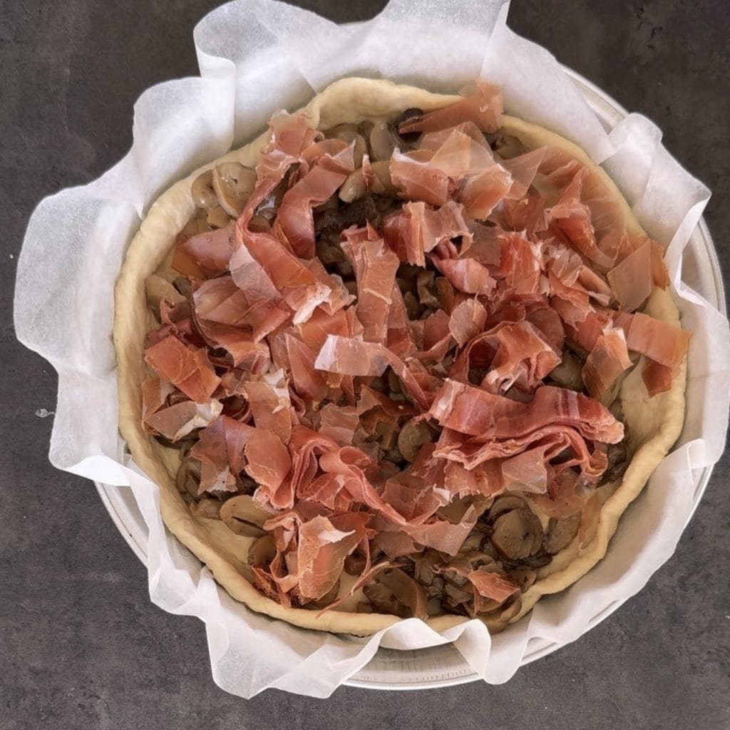 • Cuando la focaccia con speck y setas esté lista, sacadla del horno, cortadla y servidla bien caliente.