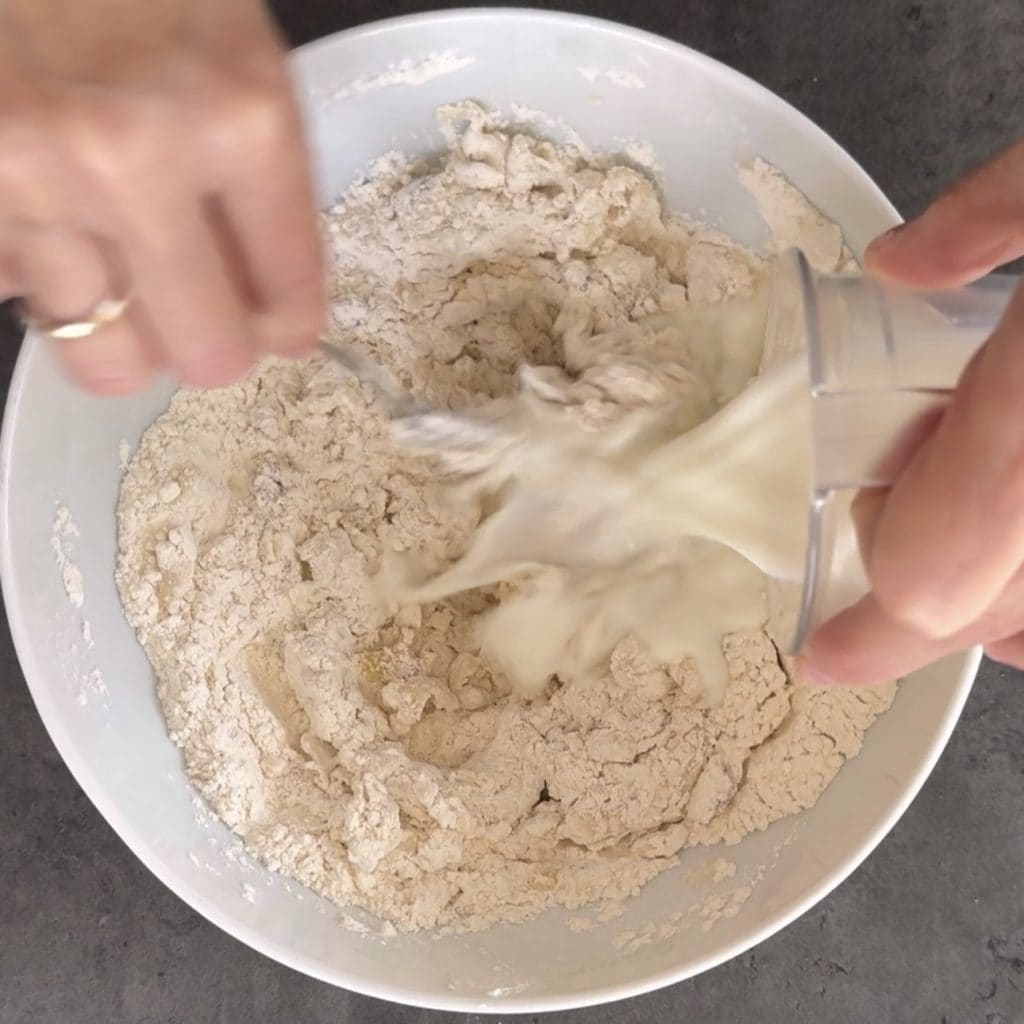• Empezamos a preparar la focaccia con speck y setas, verted en el bol la harina y la levadura instantánea,
