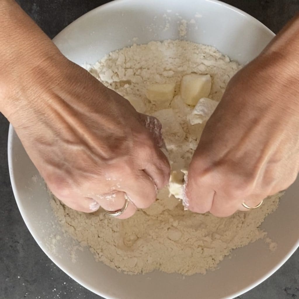y amasa hasta obtener la clásica pasta quebrada, compacta y brillante,