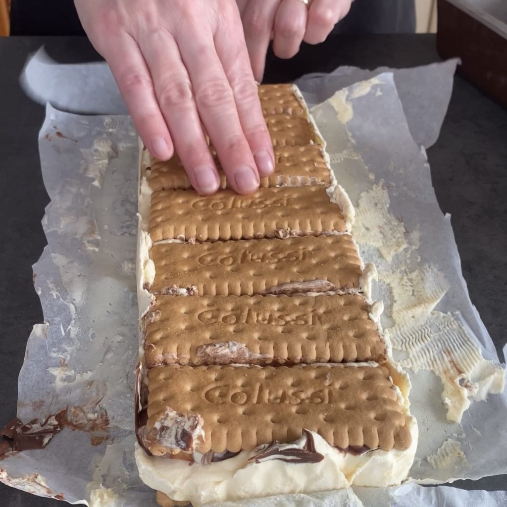 Cubrimos con las galletas restantes y guardamos en el congelador durante 12 horas.