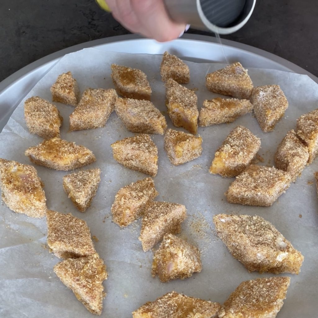 • Después de preparar la mortadela colócala en la cesta de tu freidora de aire, rocíala con aceite y cuécela a 190°C durante 15 minutos, a mitad de cocción abre la cesta, voltea los cubos de mortadela y continúa la cocción por los minutos restantes. Sirve la Mortadela empanada cocida en freidora de aire caliente o a temperatura ambiente