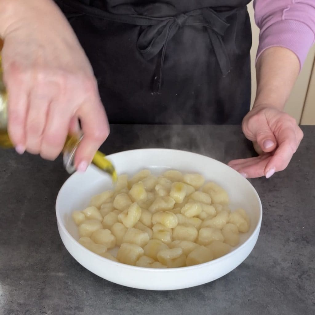 ponedlos en un bol y añadid un chorrito de aceite, mezclad para que no se peguen entre ellos y continuad cocinando el resto de los ñoquis.