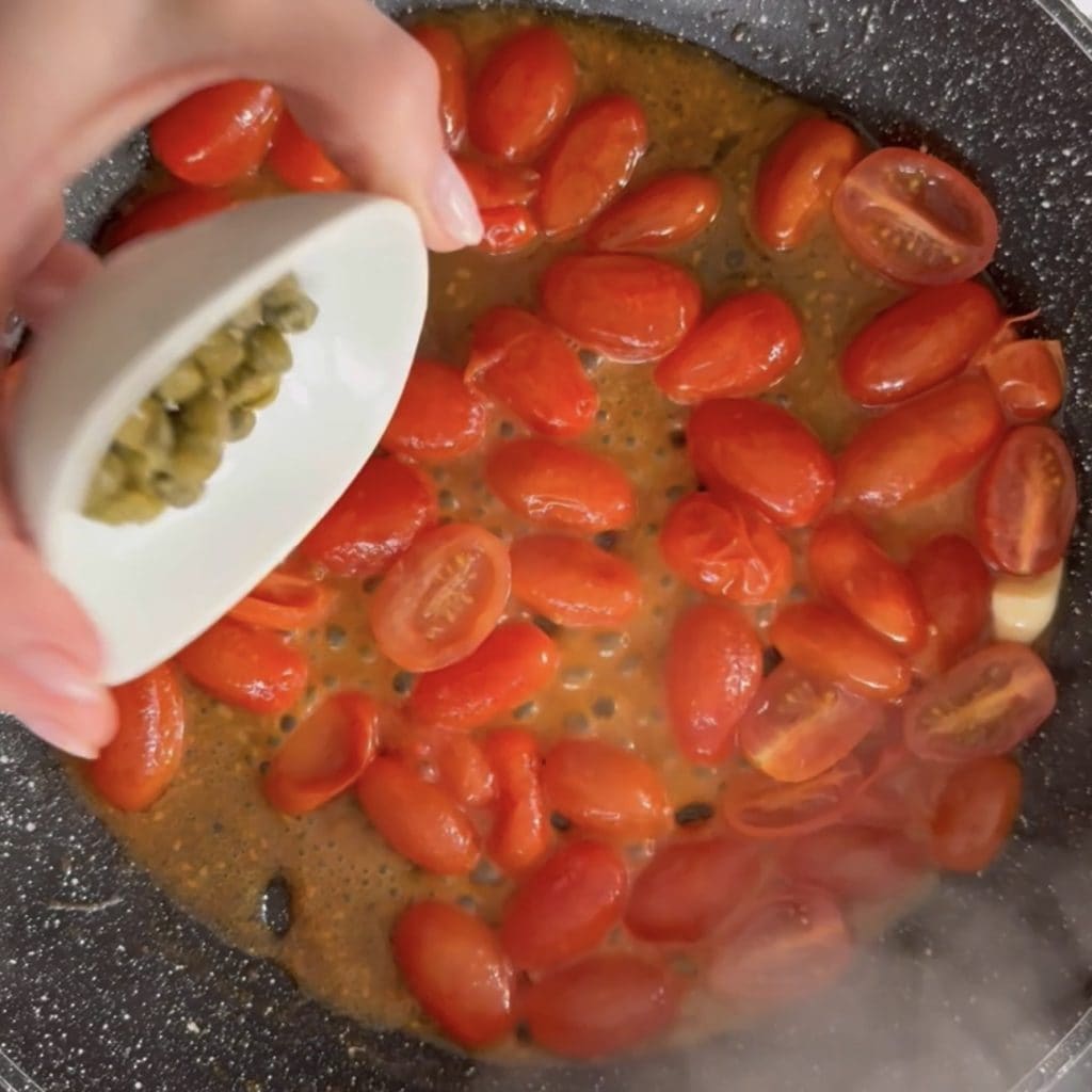 • Comenzamos a preparar la pasta atún aceitunas y alcaparras, lava los tomates cherry y córtalos a la mitad,
