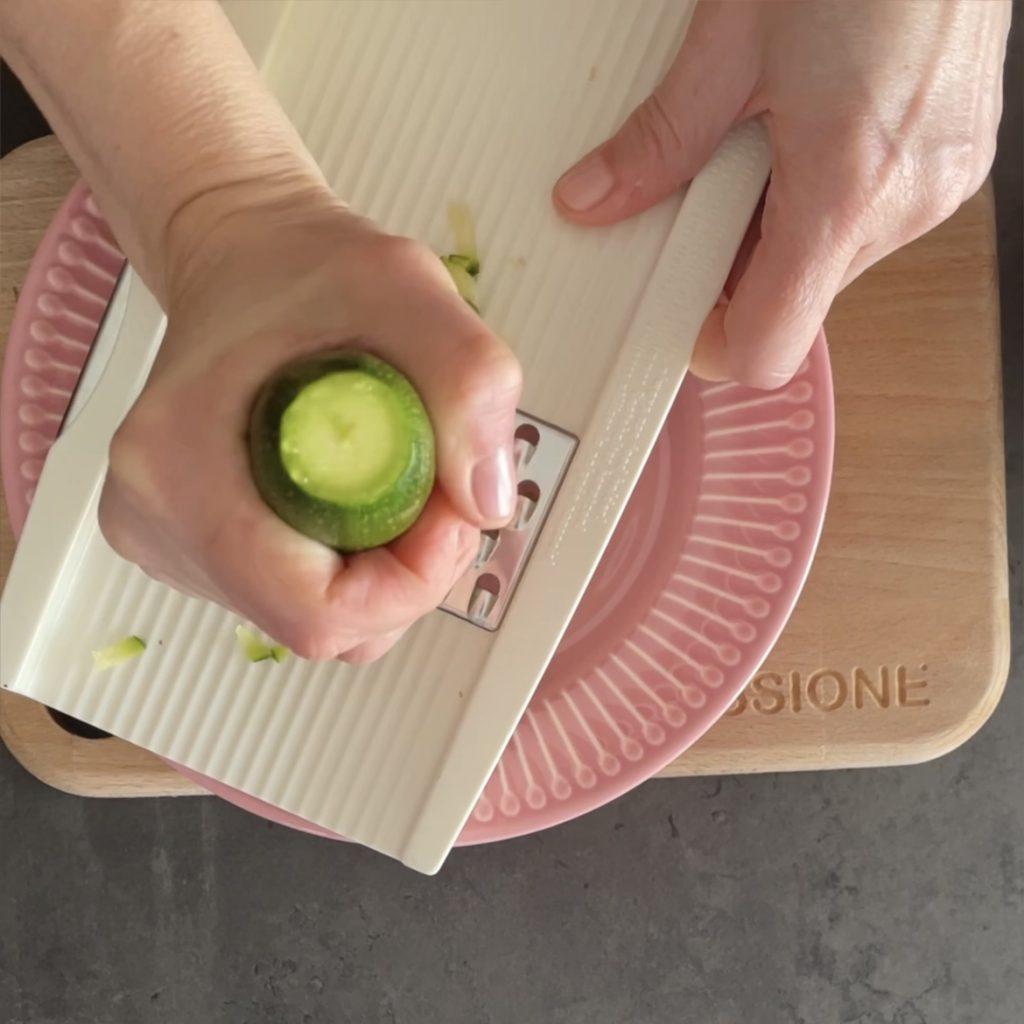 exprímelos para eliminar el agua que contienen naturalmente los calabacines.